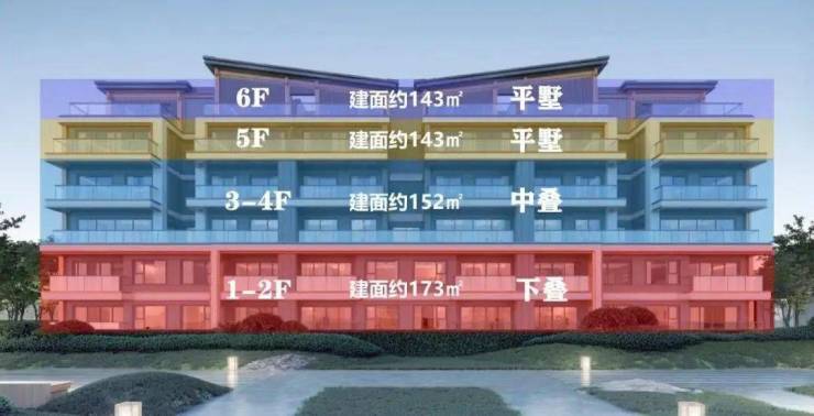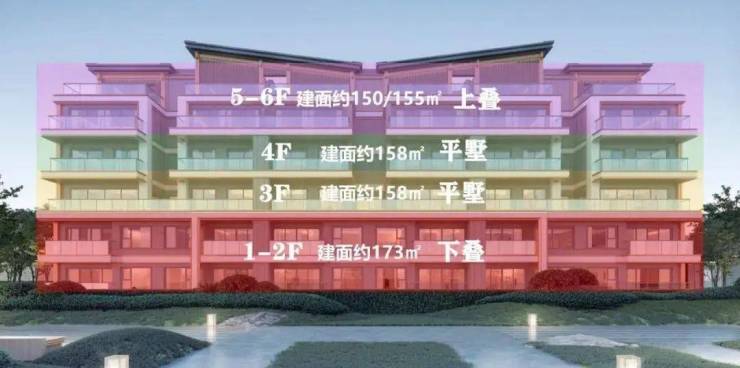 6层组合墅:中轴区采用经典双叠层+平层结构,外围区创新设置三重立体单元