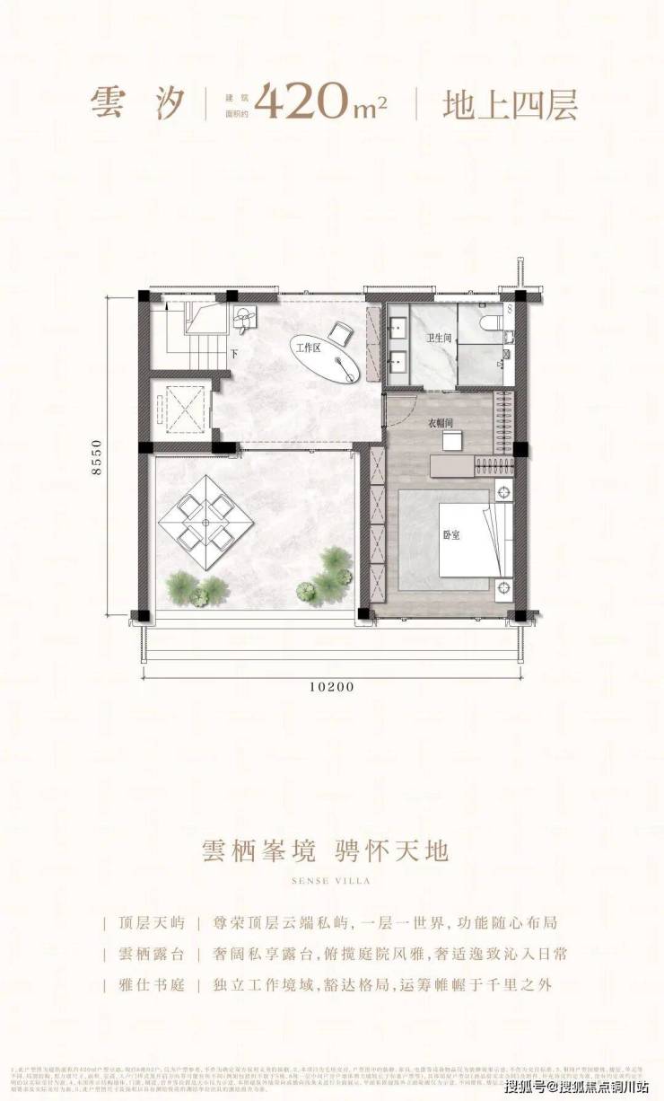 搭配配备独立套间、约4×4米的方正工作空间与约4x5.5米的阔景露台,共同构成一个布局自由度极高的生活场域。