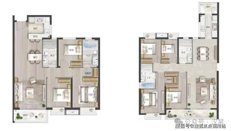 160-180㎡四居室:针对改善客户的大户型产品,配有全屋飘窗和南北双阳台,南面阳台长度达7.3米,为居者提供了宽敞的活动空间和绝佳的观景视野。