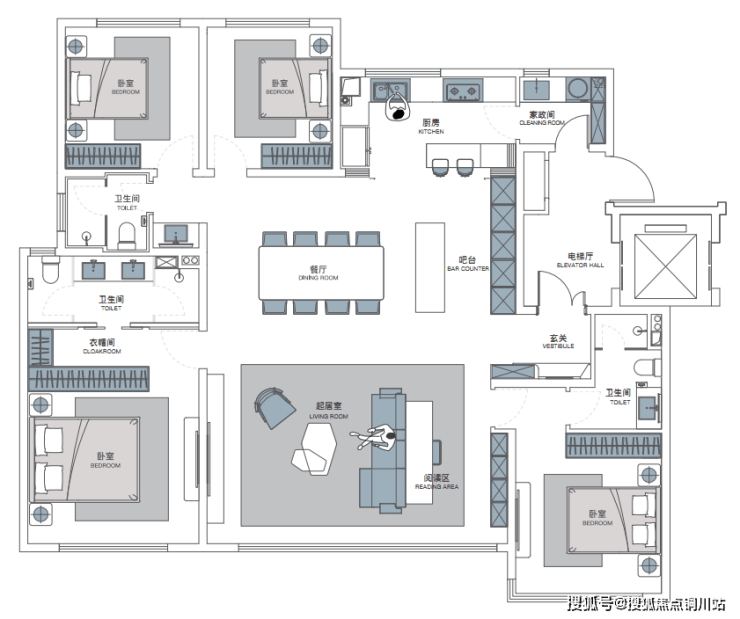 璞岸将双入户做到了全户型配置,待客、家政双动线。而且,大户型两部电梯,给足生活仪式感。