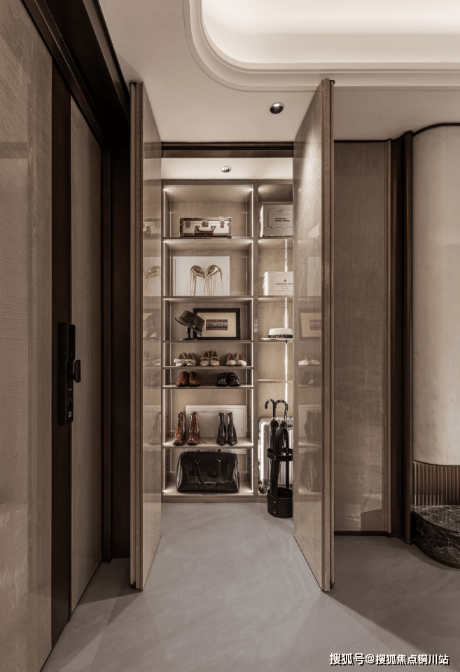 为了整体的观感统一,他将玄关功能内设在左侧墙体,约2㎡内部空间