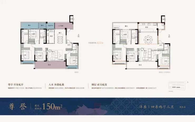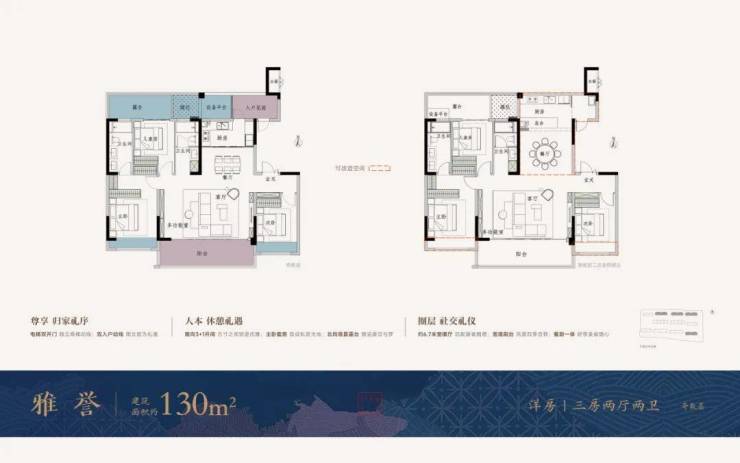 户型打造上,天誉融园充分考量居者的改善需求,打造建面约110-160㎡洋房/叠墅产品,在所有户型中均采用了多开间朝南布局,采光、通风与观景均达极致,更有大面积赠送,有效提升户型延展性。
