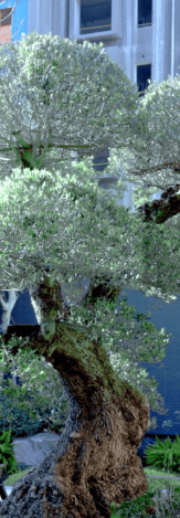 西班牙油橄榄·鎏金岁月:远渡重洋的百年生命,阳光下的枝干如金元宝闪烁,隐喻“时光淬炼的富足”,亦是地中海文明与东方园林的碰撞。