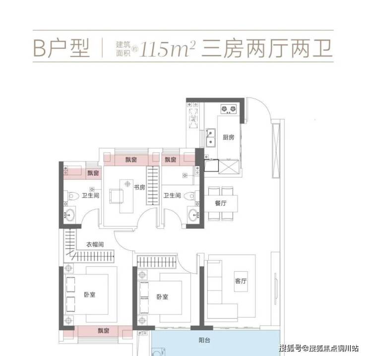 南北双飘窗+双联大阳台,景观面和采光面做到了极致。平时在阳台莳花弄草或瑜伽锻炼,绰绰有余。