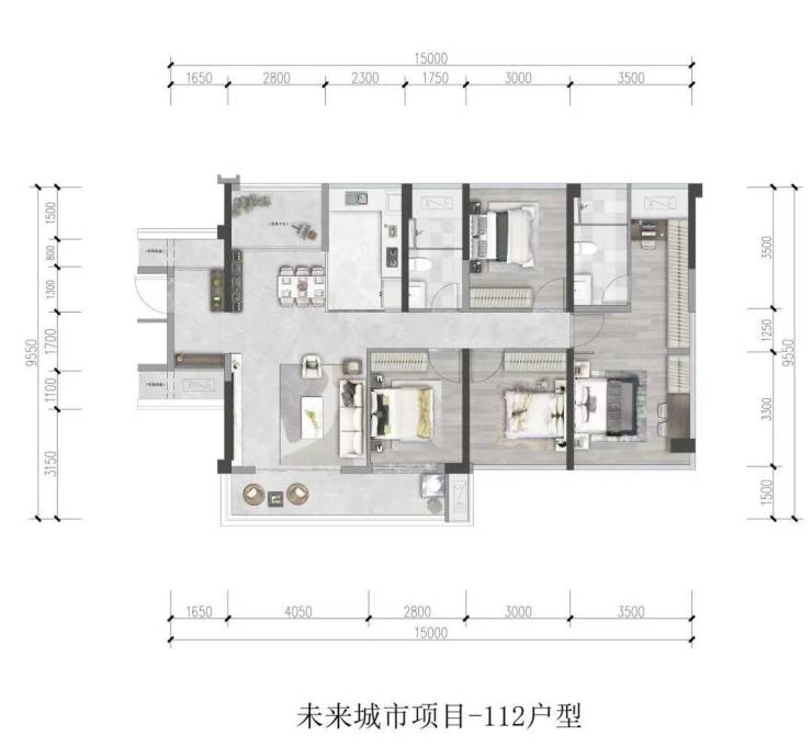 户型产品:约75-112㎡高拓展3-4房