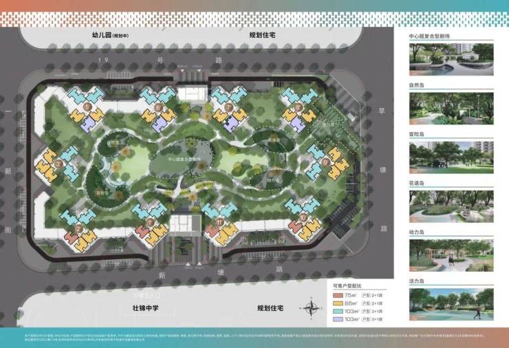 未来城市外揽约798亩江南公园,内拥约1.6万㎡周家坡地铁公园,二期森屿规划约4.5万㎡中央大园林,以全林中庭无界大花园、五大清心自然主题岛和七大无界共享盒子为基础,打造全境共生的绿色岛屿。