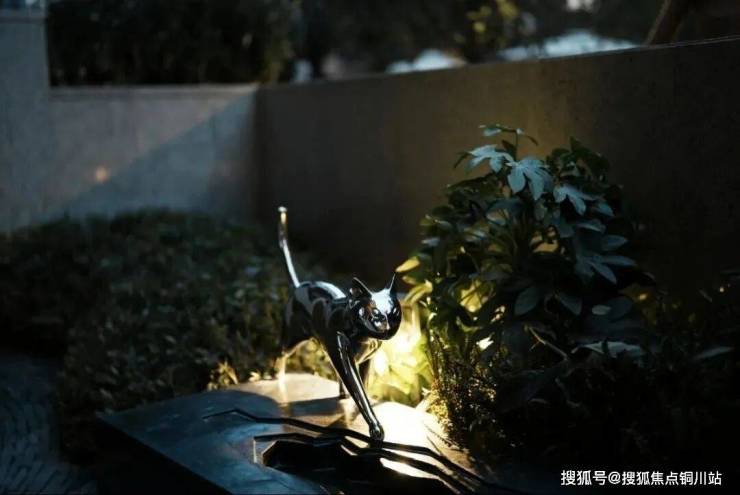 相比原方案,北侧社区大堂景观追加60多万元,提升肉眼可见。归家小院点缀红枫、乌桕,闹中取静。一体化黑山石水景矗立在入口处,不锈钢手工锻造的小猫栩栩如生,河北墨玉石由匠人手工凿开,层层叠叠,铺陈出质朴而规整的美感。