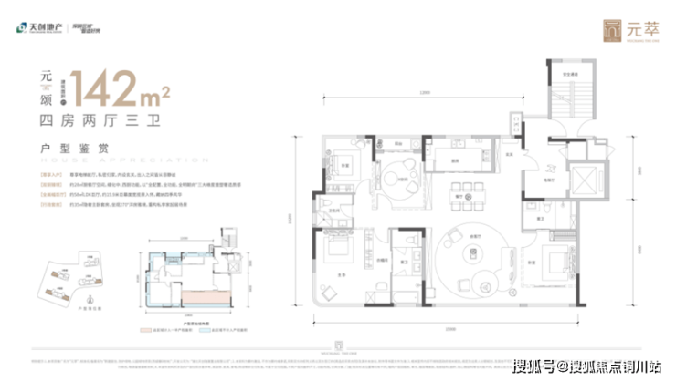 具体到产品设计,127平和142平格局基本一致,都是四房两厅三卫双套房,不过142平的开间更大,南向开间比127平宽3.2米,北向开间比127平宽3.4米,最大的区别体现在厨房和主卧开间上,其余的大横厅、 LDKB设计都一样,从户型来讲,功能差不多,但是142使用感受更好。