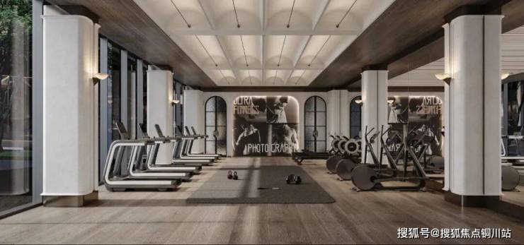 健身房特意设计成拱券式吊顶、侧向漫射灯带,这样你卧推时不会枯燥,也没了眩光干扰。