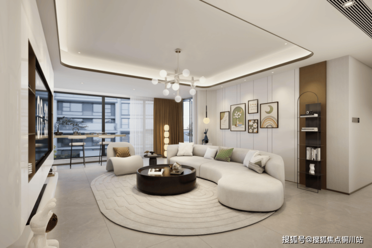 建筑立面采用浅色保温一体板、金属格栅与曲面玻璃组合,不仅颜值出众,更能引光入室,让室内通透明亮。