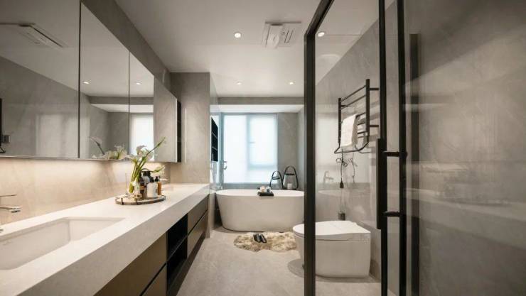 又比如男女主人的行政主卧套房,南北通透双飘窗、放得下壕华大床的起居室、步入式衣帽间以及可布置双台盆+浴缸的独立卫浴空间,称得上是人生舒享。