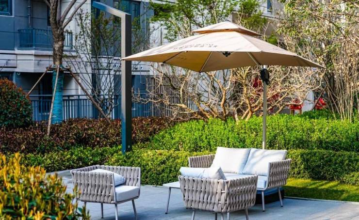 步入诗意庭院,绿树掩映着波光粼粼的水池,景观与水系有机结合,轻松惬意的空间互相渗透,一步一景,让诗意四季都有不同风格的自然美景。