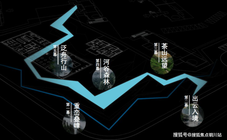 通过动与静的转换,打造开放的、更有曲折性的互动空间,使人行于水波间,便已知河流之意;行走在山体下,便已品光影之态。外部层峦叠嶂, 吸引视线, 引导人流体现昭示性和导视性;内部安静雅致, 漫步山林, 舒缓安定,体验禅意、自然的未来居住状态。