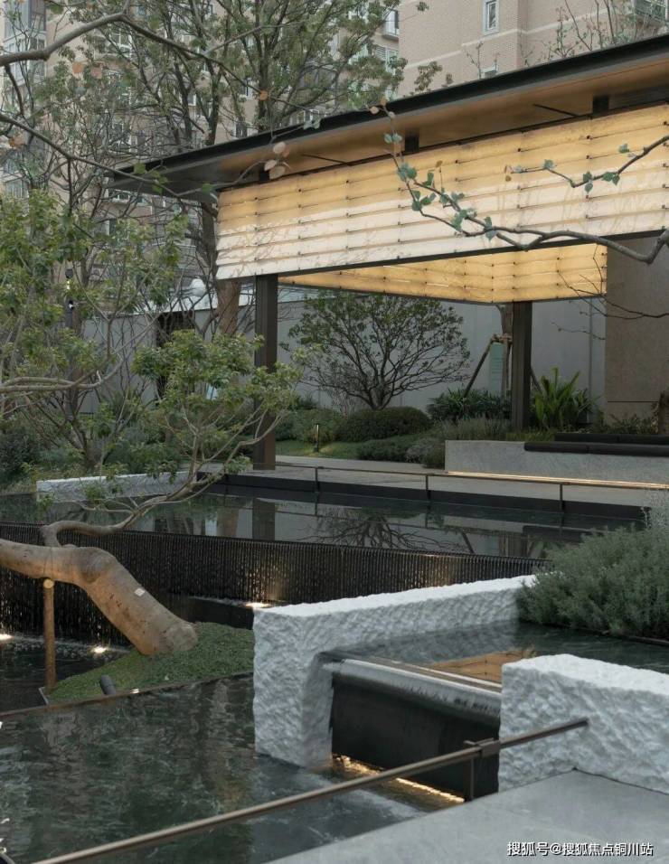 绿植以丰富的层次向深处晕染,脚下铺装的质感随步轻柔更迭。景墙之上,一缕细水潺潺滑落,声声清浅,如时间轻轻滴答。闲坐其间,一方心域悄然舒展,身心在此刻,与流水同静,与光阴同驻。