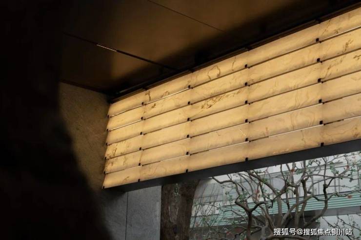288片温润的玉石玻璃,在会客厅中次第铺展,织就一帘流动的光韵。光线掠过,在其细腻的纹理间翩跹流转,漾开涟漪般柔和的光晕。