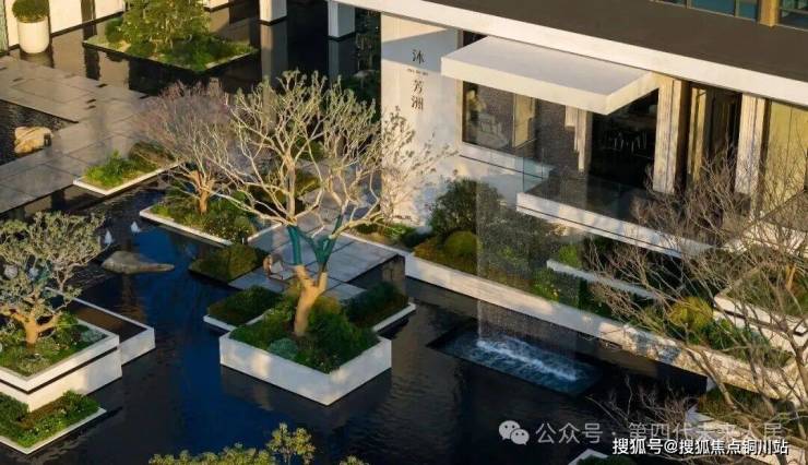 景观呈现的是一个立体的、全境洄游的园林。下沉庭院、镜面水院、阳光草坪,以多维垂直的角度,诠释着风景与日常生活的深度交融。