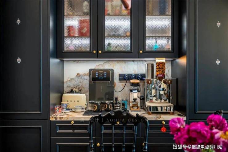 ■ 左右两侧的柜子里,各藏着一台冰箱。当现代化设备隐于无形,古典之美便得以纯粹展现。