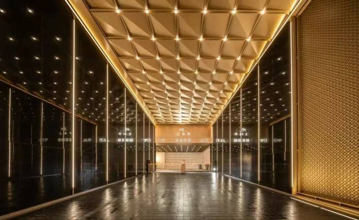 地库的呈现给人满满的精致感,不仅仅是环氧地坪+星空顶地下光厅+车道吊顶的高级配置,还有贯穿全局的“玉海棠”式符号。
