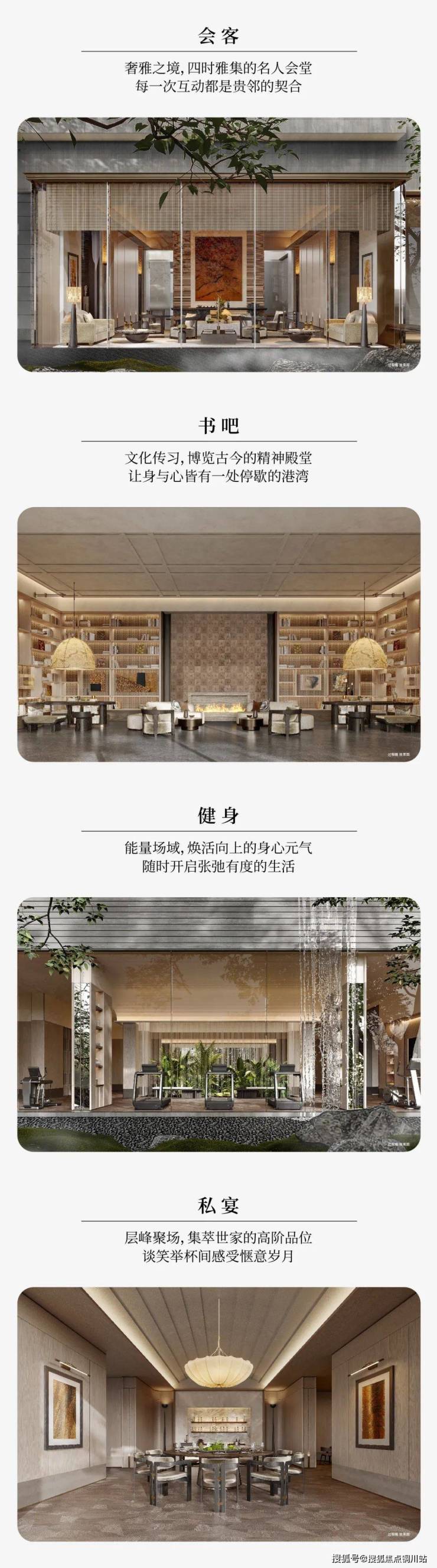 首创下沉式会所,融合度假酒店仪式感,集合私宴厅、健身房、商务会客厅、书吧等空间,构筑东方居游的隐逸之旅。管家制全时全景服务,深度聚焦昆山家族物质与情感需求,丰盈无限人生可能。