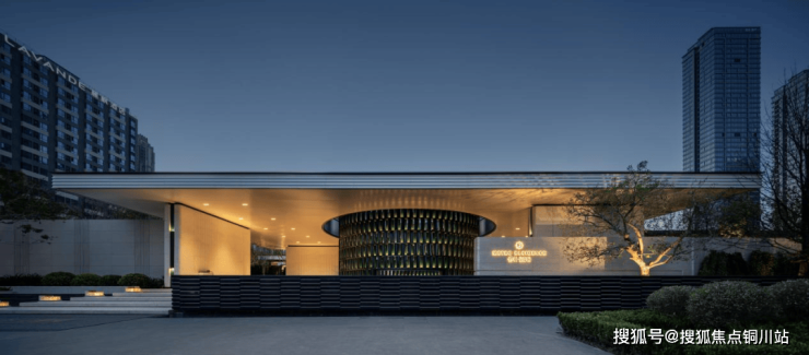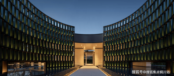 ·臻萃环形门庭,中北路地标门面:充分利用城市绿化带这一珍贵的生态脉络,打造500米中北路昭示面,约6米高绿陶板环形门庭,溯源于爱马仕翡翠陶瓷釉变哲学与PIAGET釉面瓷筒静谧美学。