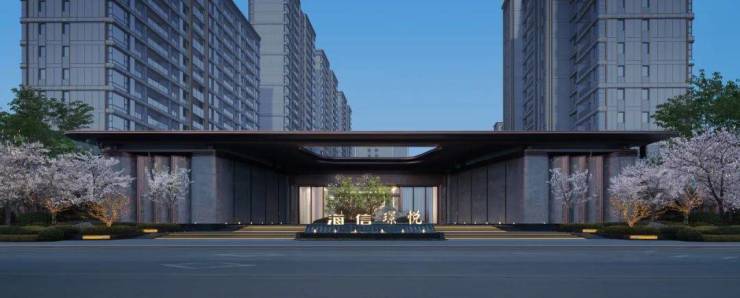 入口两侧特选的红枫与蓝杉,结合景墙特选12米超大规格丛生朴树,营造大气雅致的归家礼序。