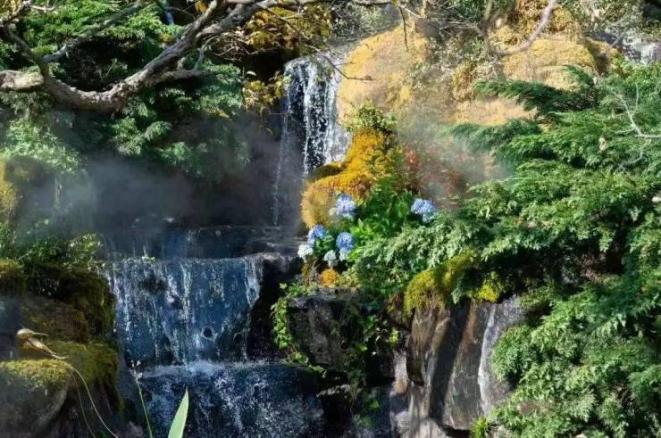在选材上甄选崂山玉石原石,定制专属迎宾石中心水景池精选大花绿石,奢而不耀。