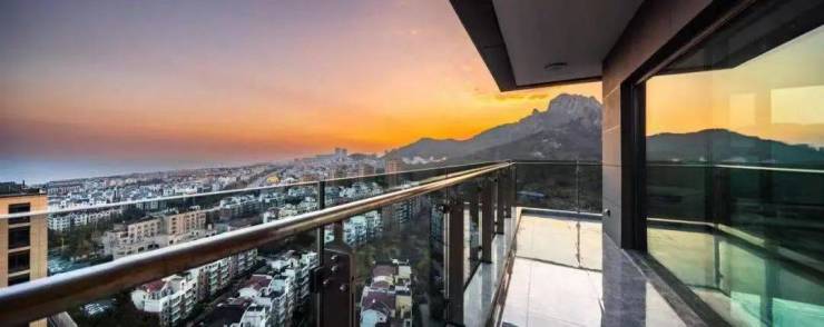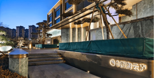绿城·西海云庐,容积率仅1.1的低密墅区,采用绿城TreesVilla原创产品,以“现代形,东方意”的建筑风格,甄选与北京万柳书院同品牌的YKK系统窗,大面积玻璃光幕搭配极窄金属边框,营造现代简约的同时,透出东方典雅的韵味;隐梁隐柱的设计,让建筑看起来更轻盈通透。在景观打造上,项目依循半山台地进行造景,利用25米的南北高差,打造出青岛罕有的台地式山水园林。