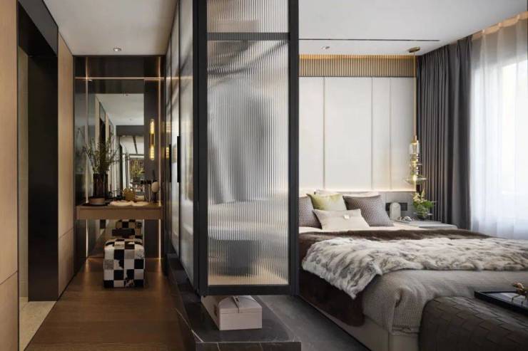 酒店式套房主卧,独立卫浴系统、步入式衣帽间,预留梳妆台空间,安放自我的时尚美学;感受酒店度假式生活的自在愉悦,书写家的美好故事。