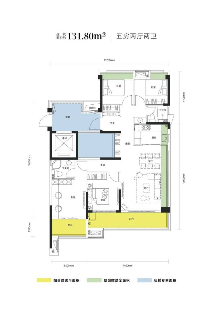 以97㎡户型为例,赠送的约8㎡电梯前室,为业主构筑出一个「前导空间」。