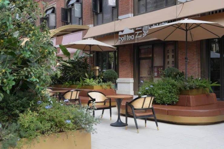 如果要用一种芬芳为我们的街区注释的话那一定是咖啡的香气,因此室内也将销售大厅打造成咖啡厅的场景,我们希望景观是室内咖啡馆的延续,所以 在沿建筑区域利用围合的户外家具,遮阳伞和特色屏风还有植物营造出时光咖啡厅,那是在阳光穿过树荫洒下的斑驳中惬意的午后时光,这里是时光的艺术走廊,也是城市的户外咖啡厅,花的香气和咖啡的香气融在一起让整个场域散发出迷人的浪漫气息。