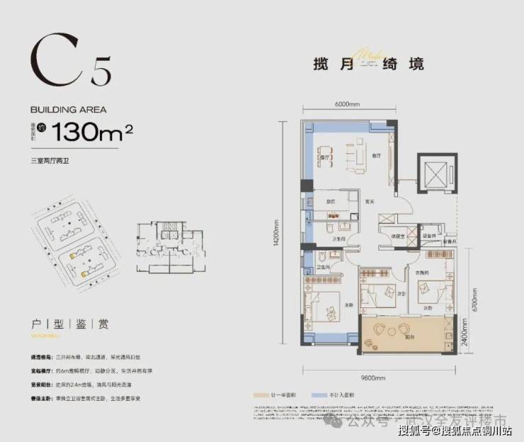 纯四代里分住区,电梯入户,2.4米进深大阳台,超高得房率。
