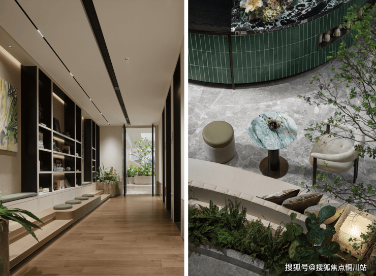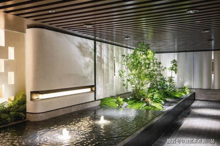 突破北方传统住宅车库的单调范式,将自然体验延伸至地下空间。当驱车抵达地下车库,由苔藓、蕨类、小型乔木构筑的绿意场景立刻便映入眼帘,以生态绿植打破地库沉寂,赋予抵达时刻自然仪式感。