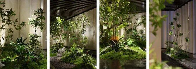 仿真植物补位:在真植物难以存活的阴暗区、高立面等位置,我们通过仿真植物无缝补位。精选具有天然肌理的高仿真材料,结合立体组合与视觉调和,达成仿真与真植的和谐统一,延伸空间的自然叙事。