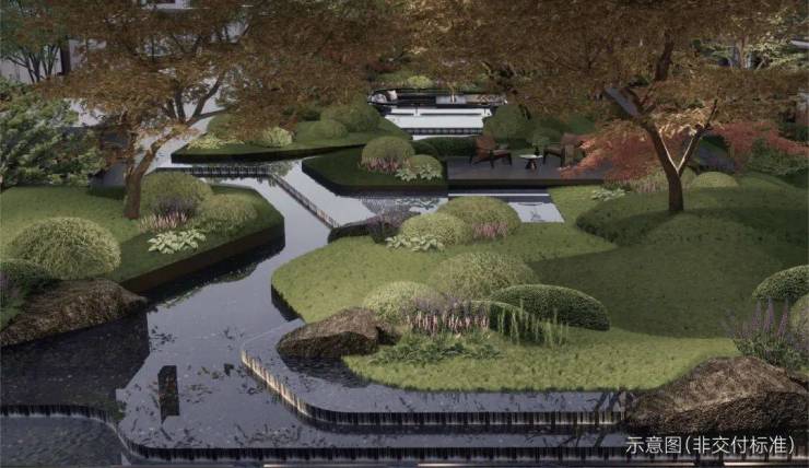 七重景观节点,超长带状花园,约150米景观漫步道 ,百米景观主轴贯穿,四时花园植被体系与艺术感花境营造,约1.5低密容积,共鸣自然生活。