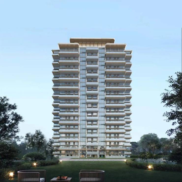 建筑通体主要为香槟色,立面以两层为单元进行统一设计,呈现出整体主次分明,挺拔向上的建筑形象。翼板尺度纤细,线条顺滑,出檐深远,质感细腻,立面充满未来感的同时又不失家庭应有的温和元素。