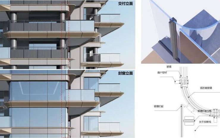 考虑交付版与后期使用之间差别,提前考虑露台栏杆与窗户交接问题,确保其落地性。