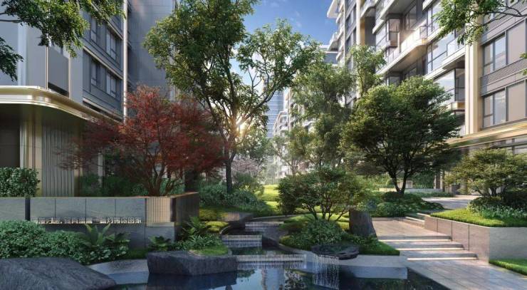 整体景观规划“一环三轴,六巷九园”,将营造度假般松弛感,让业主回到家就能放松工作一天紧绷的神经