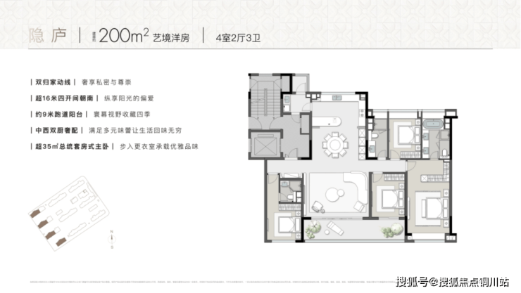 洋房户型200㎡起步,超16米四开间朝南+约9米跑道阳台+超35㎡总统套房式主卧,这尺度感非高层可比。