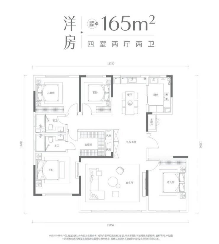 此户型金茂今典豪宅户型的延续和传承,充满强烈仪式感独立玄关,大尺度方厅设计,豪华主卧套以及超大储藏收纳主卧衣帽间,南北通透,成为市场豪宅主流。