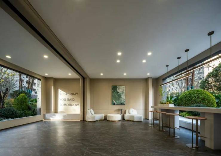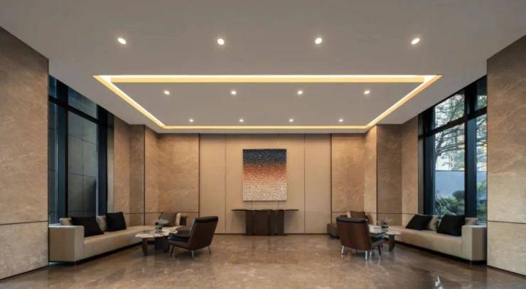 地上入户大堂,挑高的入户空间、尺度奢阔,加上通铺到顶的奢石背景墙,整个芜湖都难得一见。