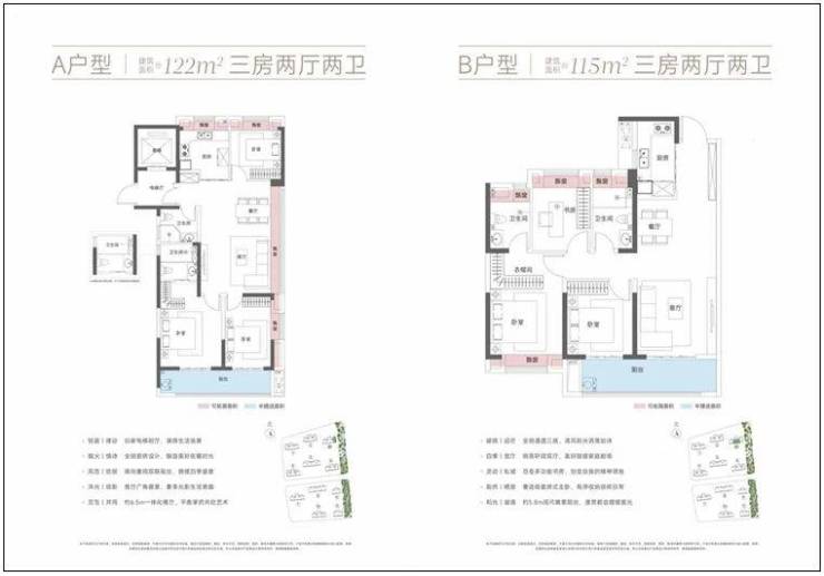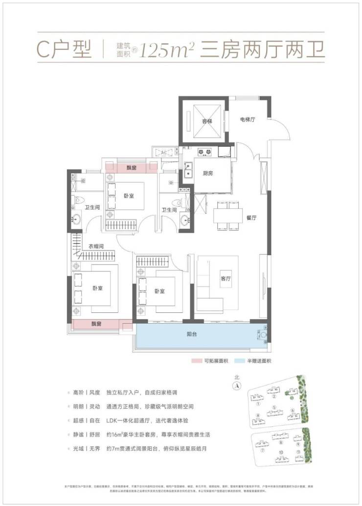 户型面积段在约99-172平米之间,主力户型是120平米左右的经典三房。