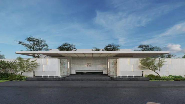 约72米超尺度门庭界面、约38米宽盛世门头、约5米屋顶净空挑檐,复兴礼序门庭。项目遴选高端进口玉石、奢石等石材,方寸间尽显威仪大气之美,演绎当代世家的门庭礼遇。