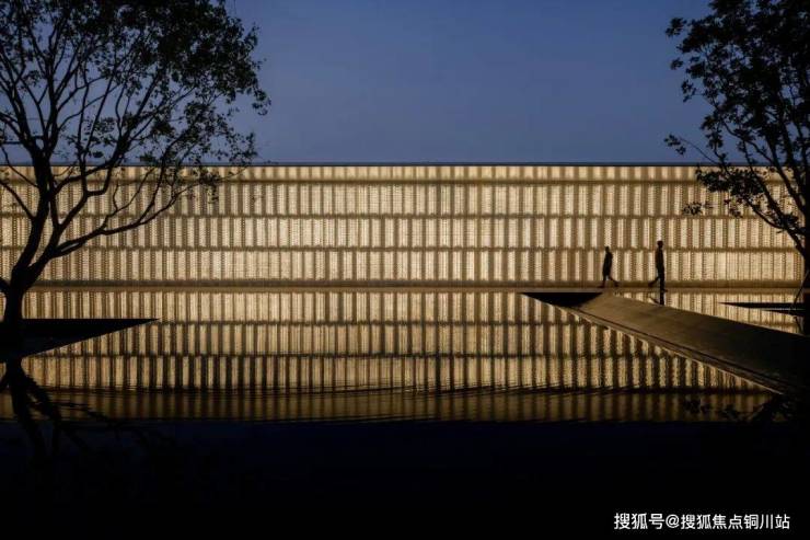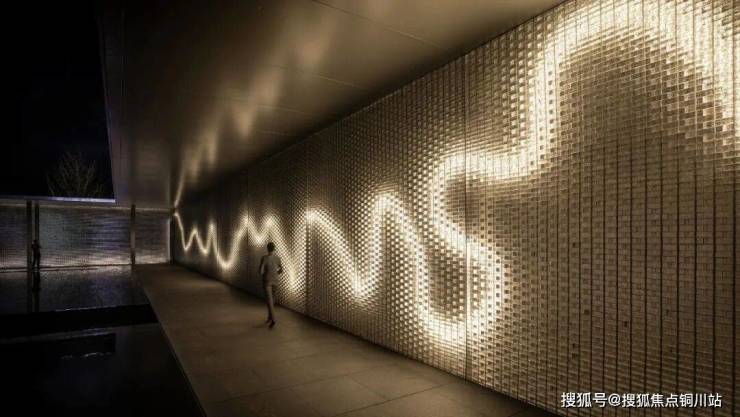 同时,梅江人文艺术馆以河流的线性形态为设计元素,以玻璃砖长墙作为视觉艺术的载体,从而营造成一种空间贯穿性的美感,于此基础上,创造了一条流动的光线海河,这种独特的设计形式,引领着每位参观者由外而内,徜徉于艺术的海洋。