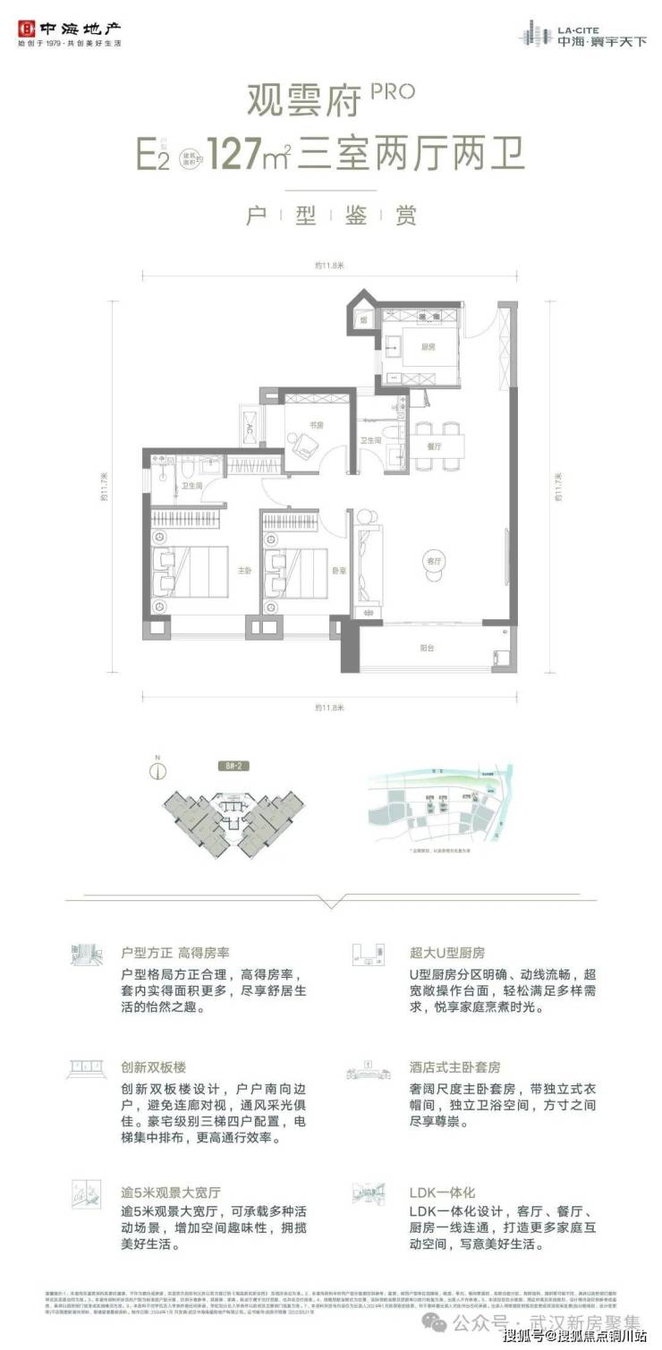 观雲府PRO8#地2号楼畅享开阔视野,创新双板楼设计户户皆边套,采光通风更优。