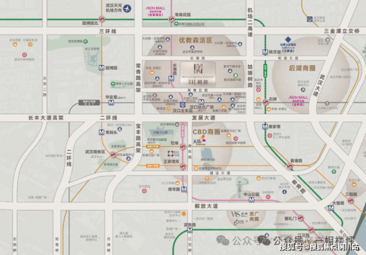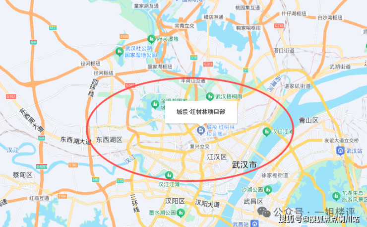 其次,它位于整个大汉口地理中心,辐射力很强。项目往南则是汉口火车站、硚口核心;往北则是三环线、常青花园成熟居住区;往西则是武汉园博园,东西湖核心区;往东一条快速路之隔便是江岸后湖核心。基本上覆盖全汉口人的买房需求。