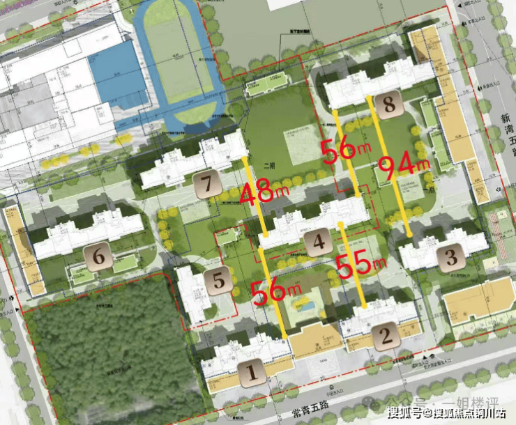 城投红树林主要由8栋住宅组成,部分楼栋间距约50米以上,刚刚加推的3号楼更牛,南向是小区配建的幼儿园,北侧与8号楼之间的楼间距约94米,可以说是前后无遮挡,采光、通风、视野无敌!