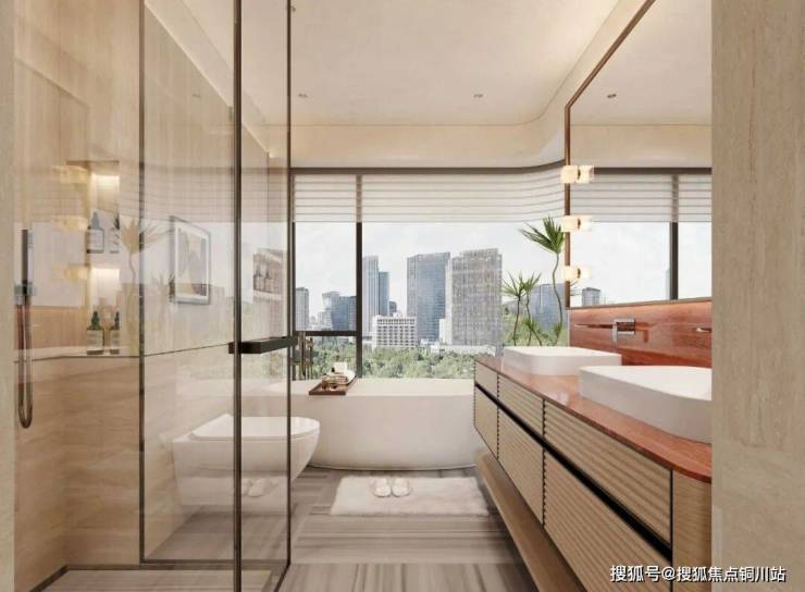 洋房的居高临下+270°环幕视效,让家变为城市观礼台,紫琅湖、湿地公园、一众城市地标等以4K级清晰度闯入生活,媲美万豪酒店总统套房的观景视野。
