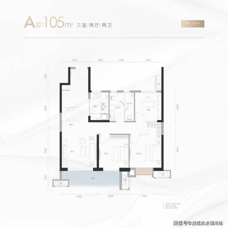 尤其建面约105㎡三房,