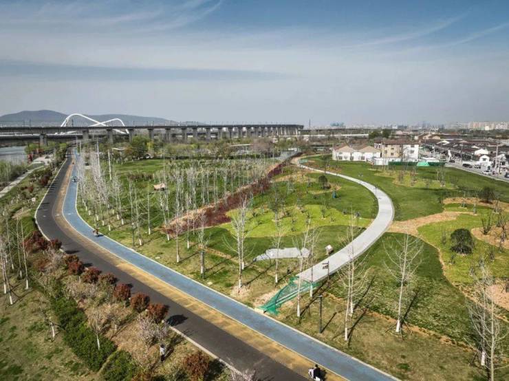 明外郭--秦淮新河百里风光带,由明外郭与秦淮新河及其沿线开放空间共同构成,总长约48公里,每步行10-15分钟就设有服务设施或驿站,并将与城市绿道、滨江风光带相互连通,构建长达100公里的江南绿道环,既是生态廊道,也是市民共享的城市花园。