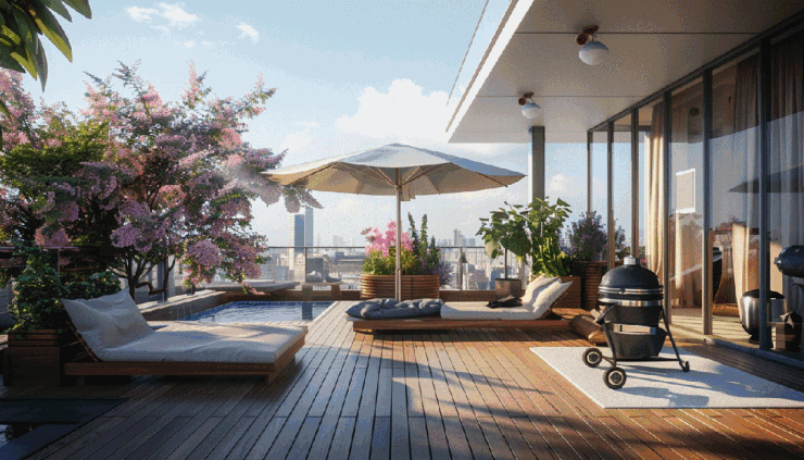 50cm覆土是植物的温床,从爬满栅栏的蔷薇到结满青果的石榴树,都能在此扎根结果。贴心的防水与排水系统,哪怕是新手小白,也不必担心浇水淹了新栽的植物。80cm宽的隐私挡板,巧妙地挡住邻里的视线,营造出静谧专属的空中花园。